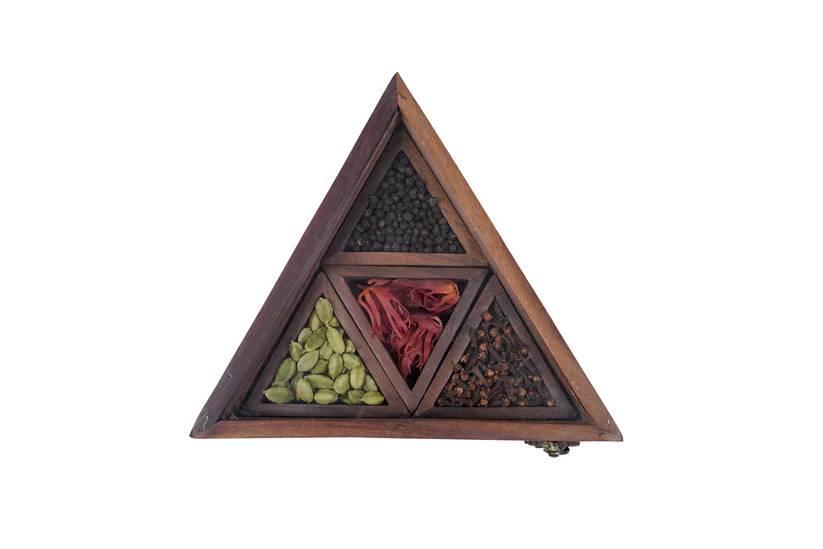 Colour :- Brown / Material :- Sheesham Wood Wooden Handmade Masala /spice Box For Kitchen Use